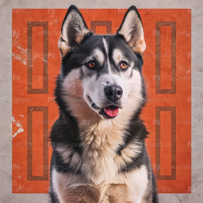 Близкий портрет хаски с коричневым прямоугольным фоном