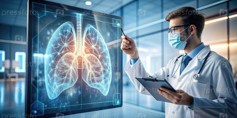 Врач, изучающий цифровые рентгеновские лучи легких в современном медицинском учреждении