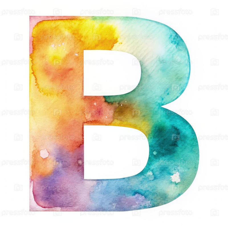 Акварель буквы B в цветах радуги