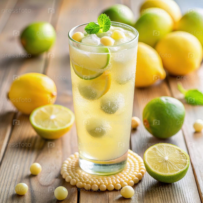 Освежающая летняя лимонада с известком и мятой на деревянном столе