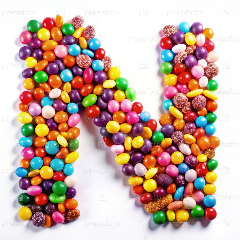 Цветная конфета буква N на белом фоне