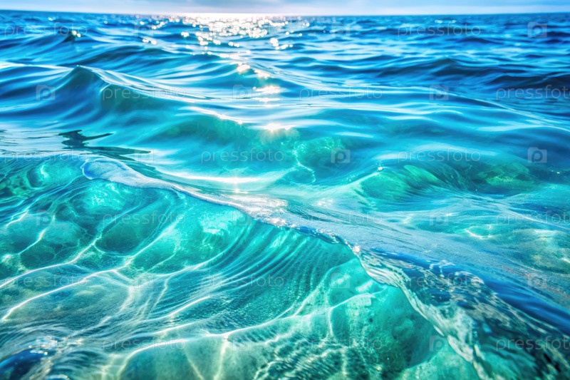 Синие водяные волны с отражением солнечного света. генерирующий ясный ИИ