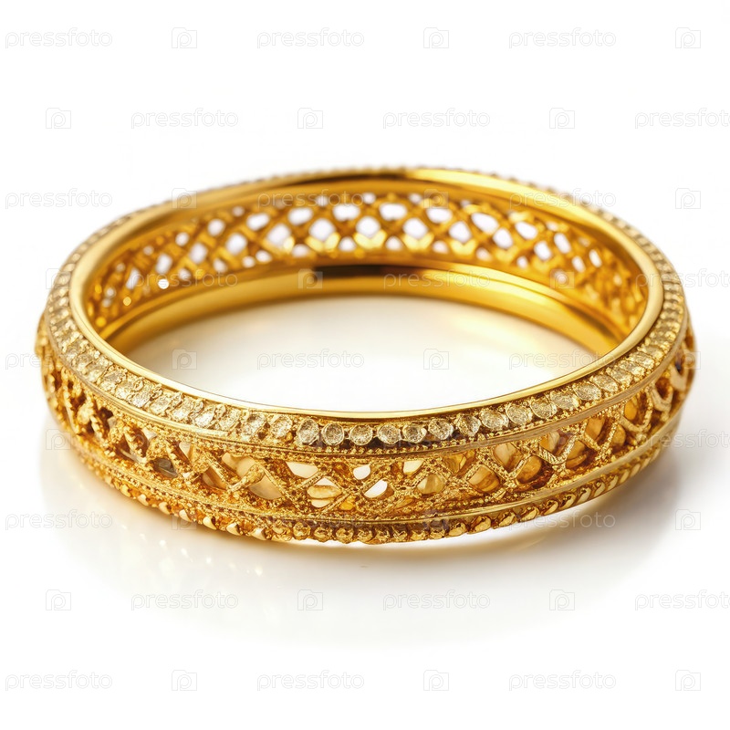 Деликатный золотой браслет со сложным решетчатым дизайном на белом фоне