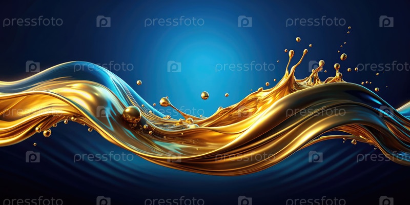 Золотая волна моторного масла брызгает на синем фоне