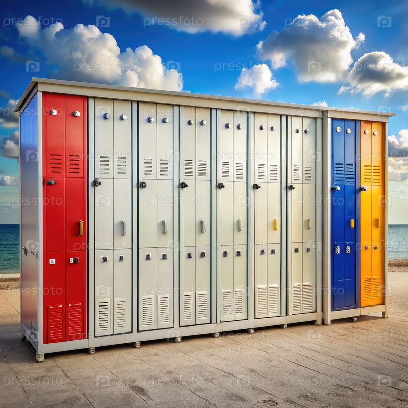 Красочные шкафчики в отделении переодевания на берегу моря