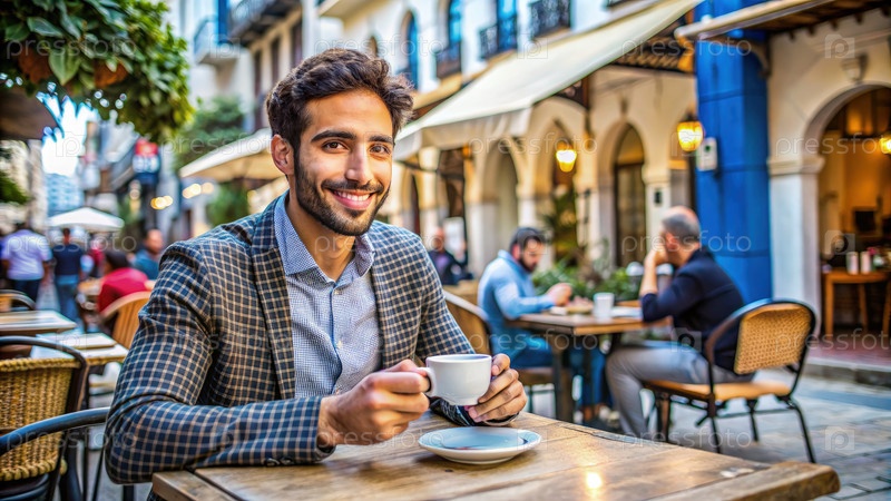 Тунисский мужчина наслаждается кофе в открытом кафе