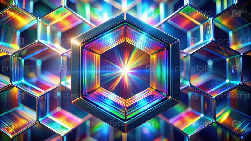 Шестиугольный многоэкранный эффект призма линзы с хроматической дисперсией света. генеративная ИИ