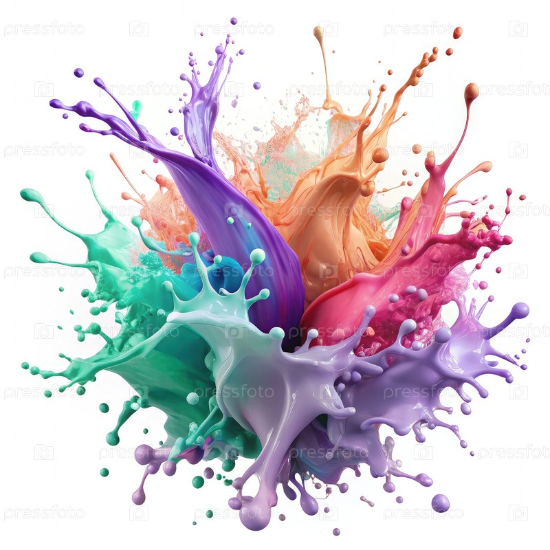 Многоцветный взрыв жидкостных брызг на белом фоне. генеративная ИИ