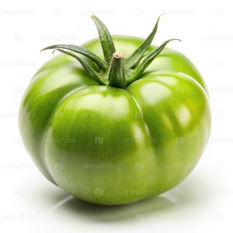 Одинокий зеленый помидор на белом фоне