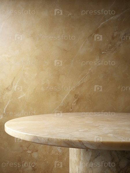 Мраморное столовое покрытие против бежевой мраморной стены. генеративный круглый AI