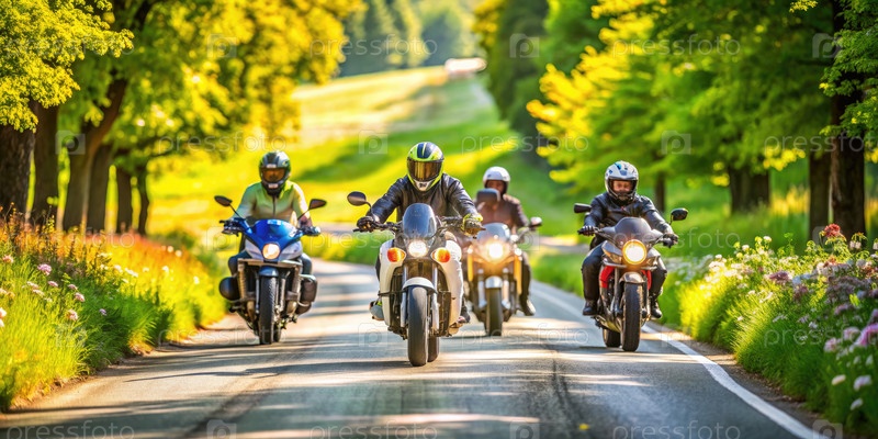 Поездка на мотоцикле сквозь пышные зеленые деревья