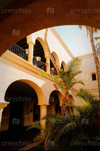 Очаровательная солнечная дворовая обстановка. расслабляющая южная часть США вдохновленное направление с теплыми тенями
