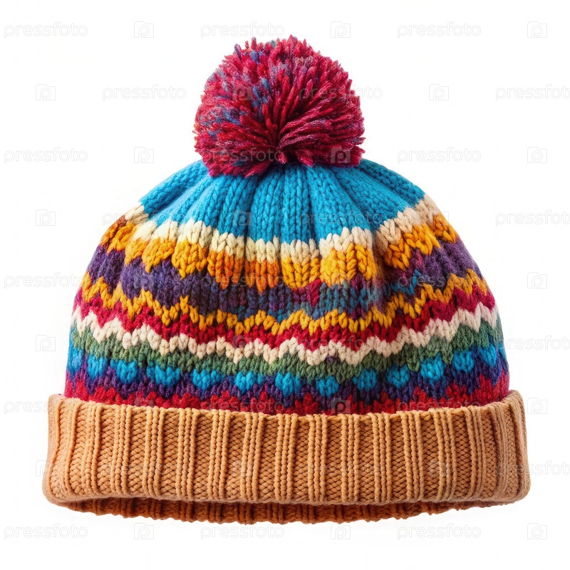 Красочный трикотажный бейн с пом-пом, изолированным на белом фоне