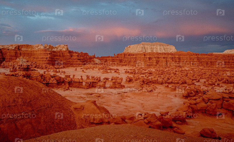 Потрясающий вид яркого захода солнца излучает сияние на скалах каньона