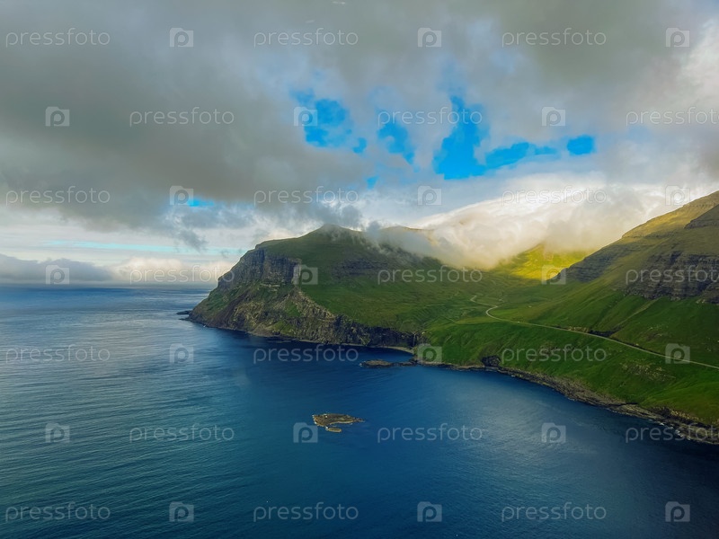 Живописное отдаленное побережье с спокойными водами и пышными зелеными склонами