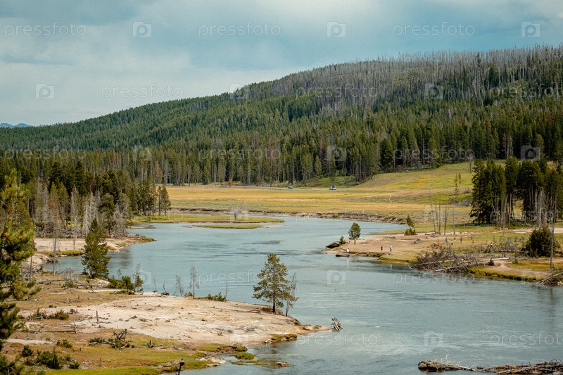 Спокойная река Йеллоустоун проходит сквозь пышные поля, мимо естественных лугов и лесов