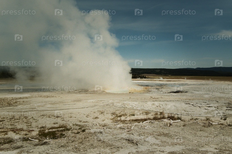 Изоляция окружает мощную сцену извержения геотермальных гейзеров