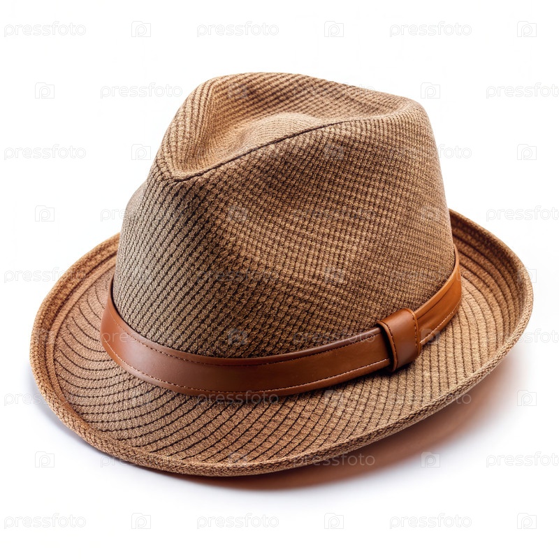 Коричневая шляпа Fedora с кожаной полосой, изолированная на белом фоне