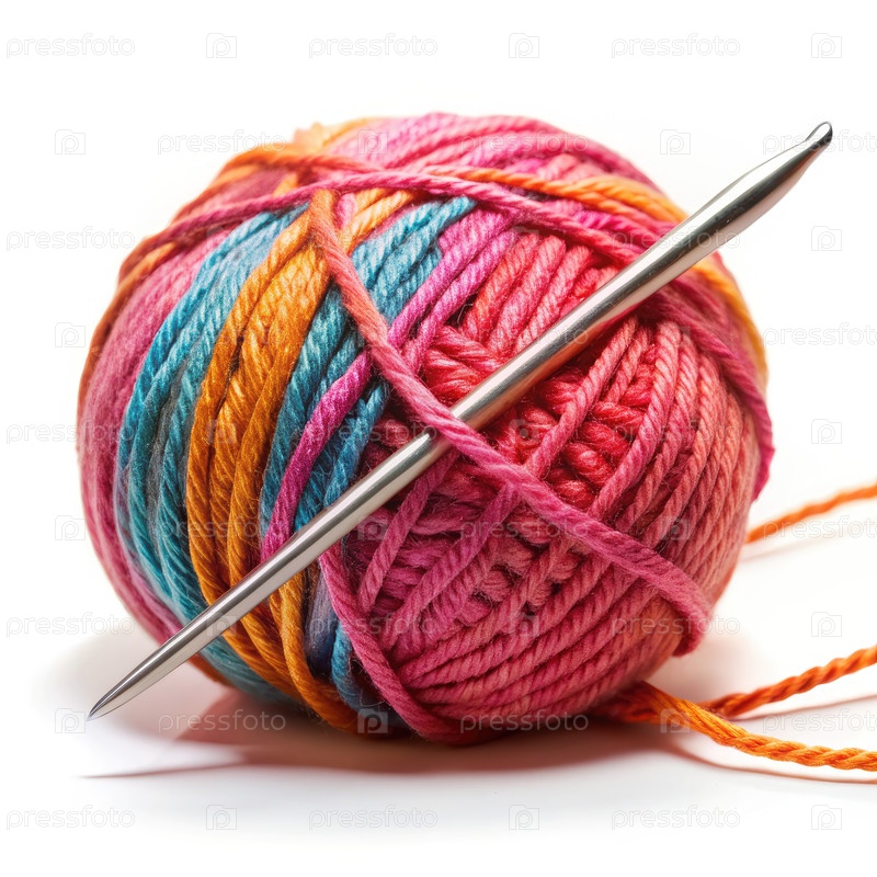 Красочный шар из пряжи с иглой на белом фоне
