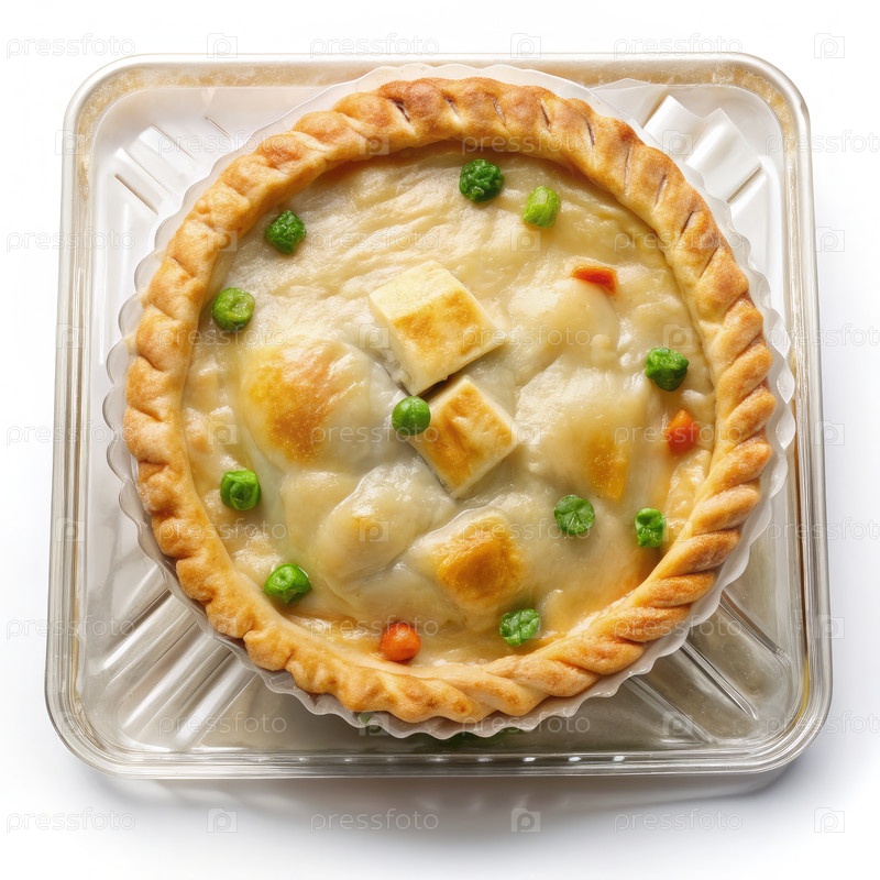 Замороженный пирог из куриного горшка в пластиковой тарелке
