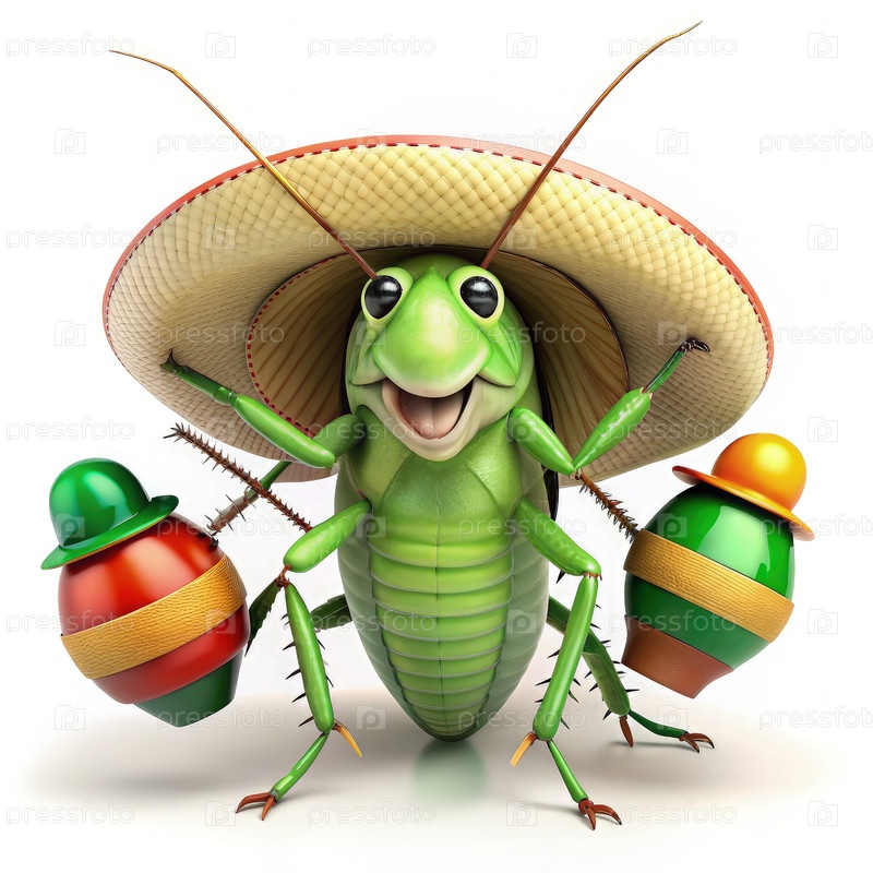 Зеленый таракан, носящий зонтик играет в Маракасе