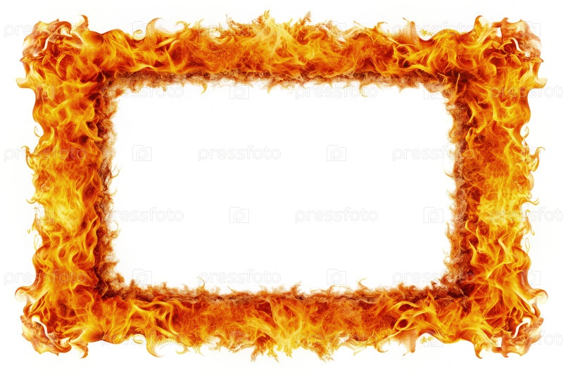 Огненная прямоугольная рама изолирована на белом фоне