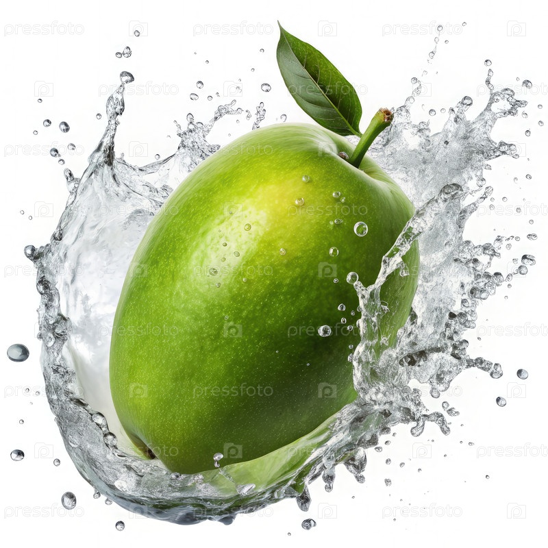 Свежий зеленый манго брызгает в воду. генеративный ИИ