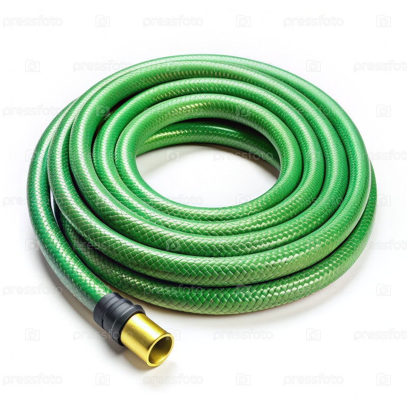 Закрученный зеленый садовый шланг с латуниной сопла изолирован на белом фоне. генеративная ИИ