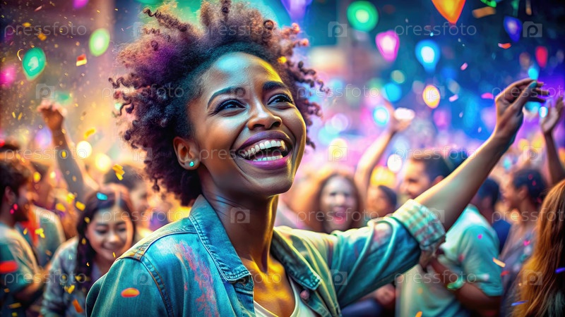 Женщина, танцующая с радостью на ярком ночном мероприятии
