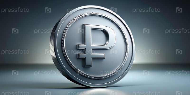 Серебряная монета российского рубля с знаком "рубль"; генеративный ИИ