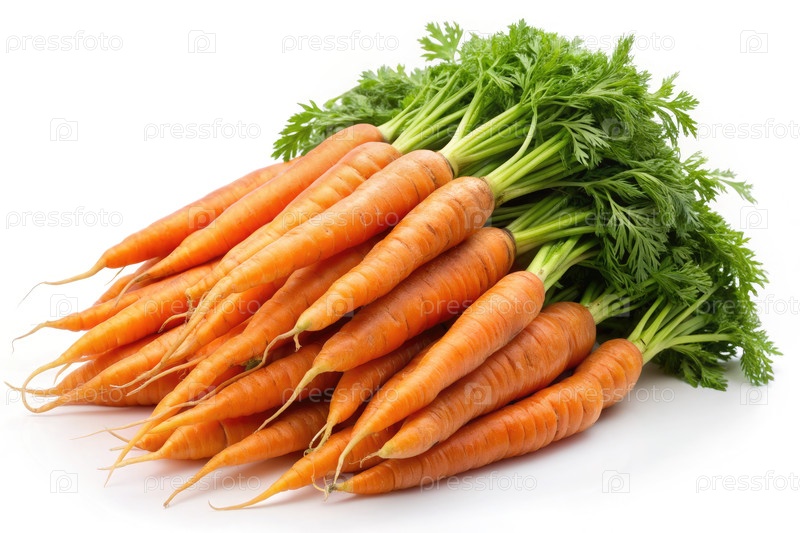 Свежие оранжевые морковь с зелеными вершинами на белом фоне