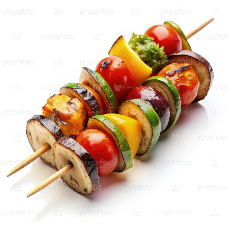 Жареный овощный скевер с баклажанами, цуккини, перцем и вишневыми помидорами