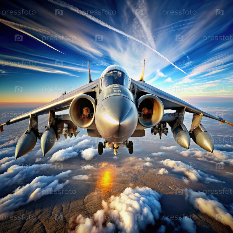 Вдохновленный Германией истребитель летает над облаками на закате