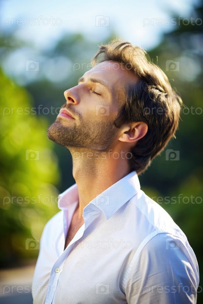 Человек, дышащий свежим воздухом в солнечный день на природе. генеративный ИИ