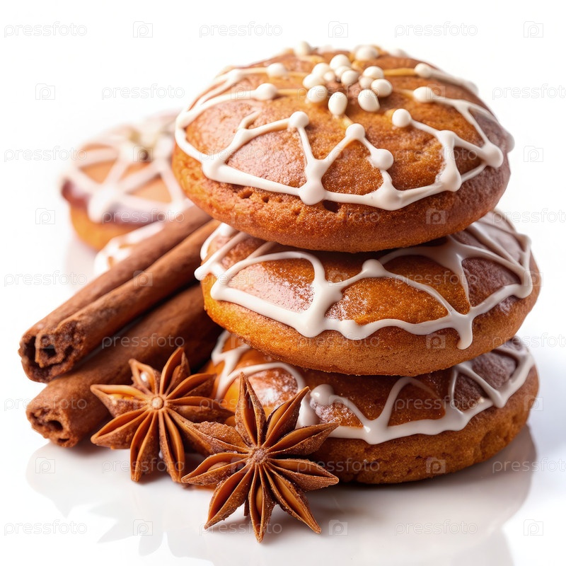 Печенье из имбирного хлеба с корицей и звездным анисом на белом фоне