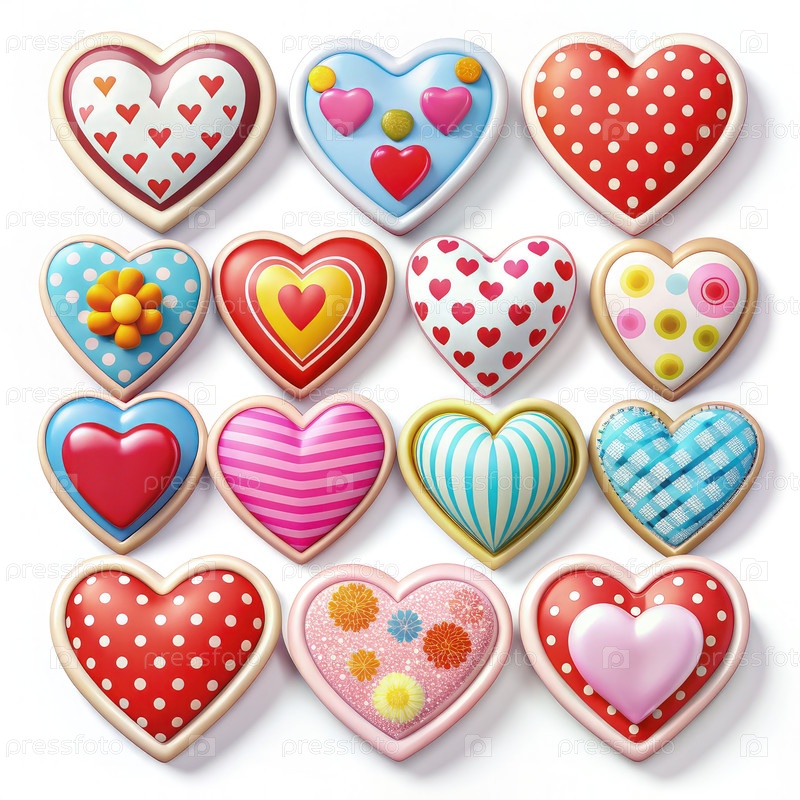 Красочные наклейки в форме сердца с различными узорами и рисунками