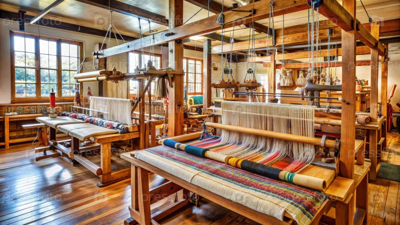 Деревянные станки в исторической ткацкой мастерской