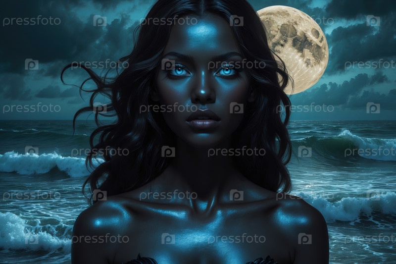 Фантастический портрет молодой красивой женщины Магическая модель, русалка в море из сказки AI Generative