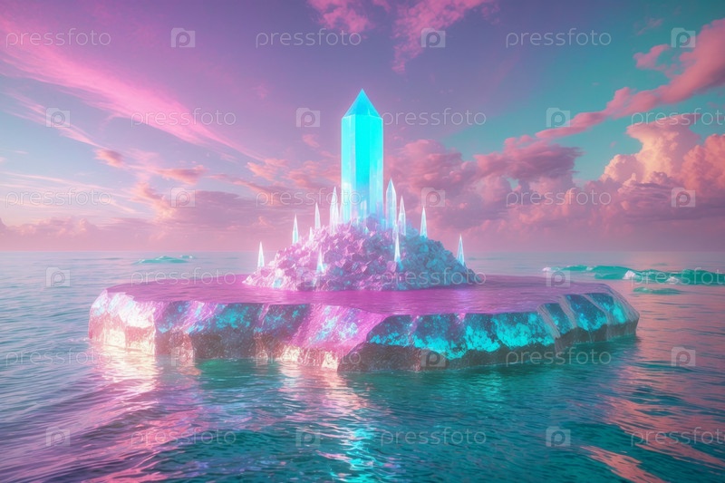 ИИ генеративный ландшафт фантазия большие высокие кристаллы футуризм в космосе планета кибер-открытие