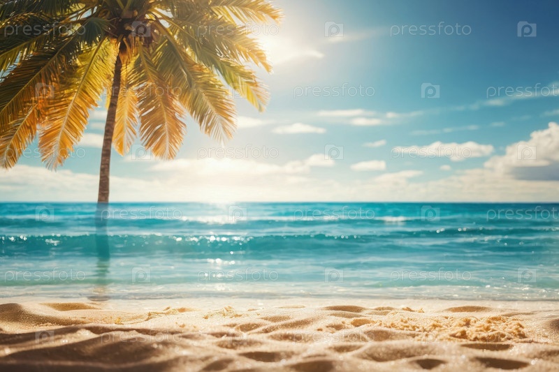 AI Generative Background copy space for text Летняя тропическая плоская кровать с аксессуарами Отдых на море