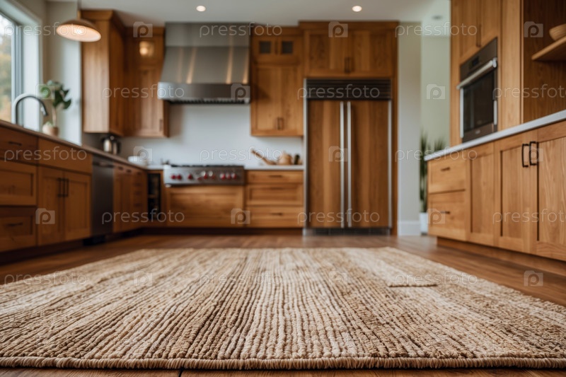 Современный стильный модный кухонный интерьер с деревянной мебелью и размытым фоном AI Generative