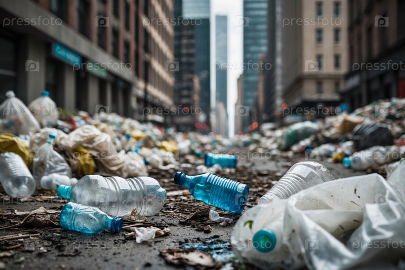 Генеративный ИИ Загрязнение окружающей среды городской придорожной улицы, мусорно-мусорных мешков и свалок на полигоне в городе