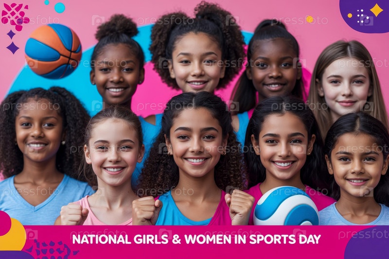 Открытка Национальный день девочек и женщин в спорте, фитнес Атлетическая молодежь женская ИИ генеративная