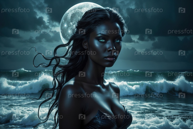 Фантастический портрет молодой красивой женщины Магическая модель, русалка в море из сказки AI Generative