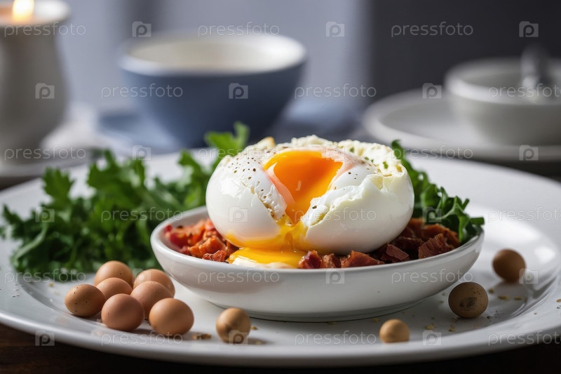 Приготовленные яйца тарелка на столе, сердечный вкусный традиционный кулинарный бранч кухня закуска AI Generative