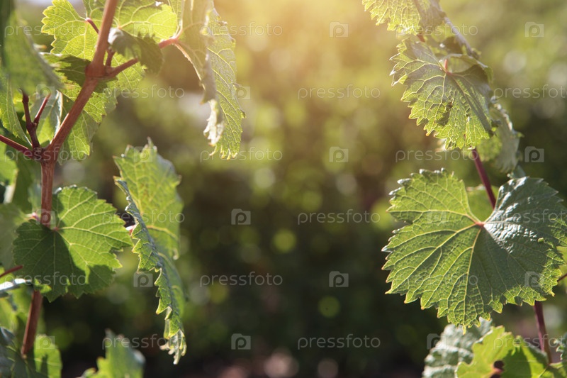 Виноградная лоза на солнце. Зрелые виноградные лозы. Сезон осень-лето. Сбор урожая. Солнечный свет на плантации винограда. Фонд для текста