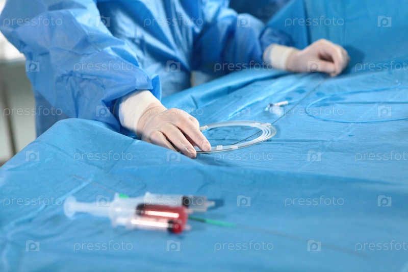 Удаление сгустков крови. Операции на кровеносных сосудах. Современная хирургия. Лапароскопическая операция. Руки хирурга. Хирургические вмешательства в кровеносные сосуды. Концепция здравоохранения