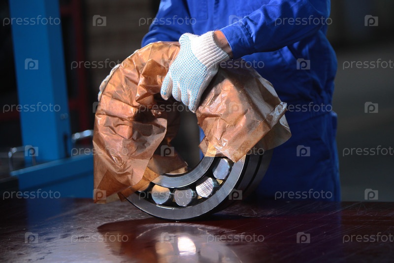 Упаковка подшипника для защиты от коррозии, загрязнения и механического повреждения. Хранение и транспортировка подшипников. Производство подшипников. Готовые продукты на фабрике. Мастерская на заводе тяжелой промышленности. Тяжелая промышленность
