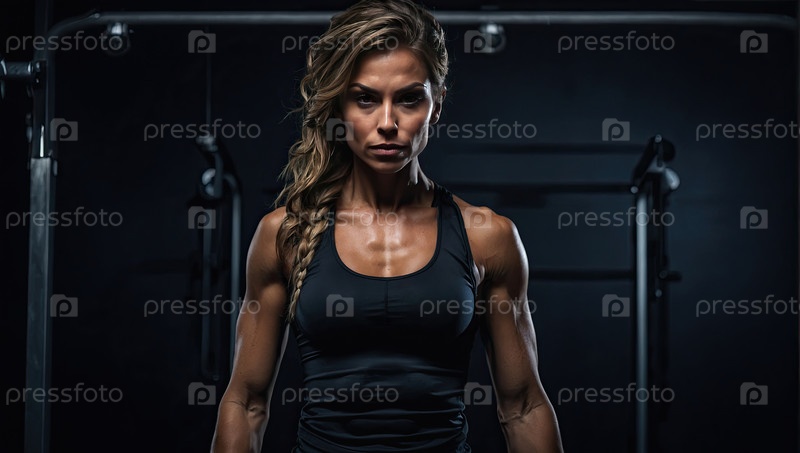 Атлетический кавказский женский фитнес-тренировщик, тренажерный зал, спортивная одежда, личное обучение, профессиональное тренерство, здоровый образ жизни, портрет, персонал, область сообщений