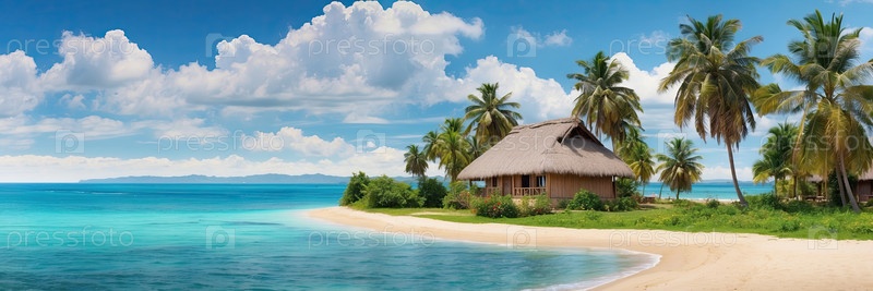 Бунгало на берегу моря на белом песке, эксклюзивный уход со всем включенным, тропическое семейное гостеприимство, цифровое рисование мультфильмов